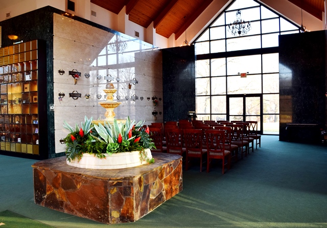 A more modern mausoleum style chapel is available in our Quiet Reflections Mausoleum. Vastly different from the Tudor-Gothic chapel, this location offers plenty of natural sunlight and a more open feel for any service.