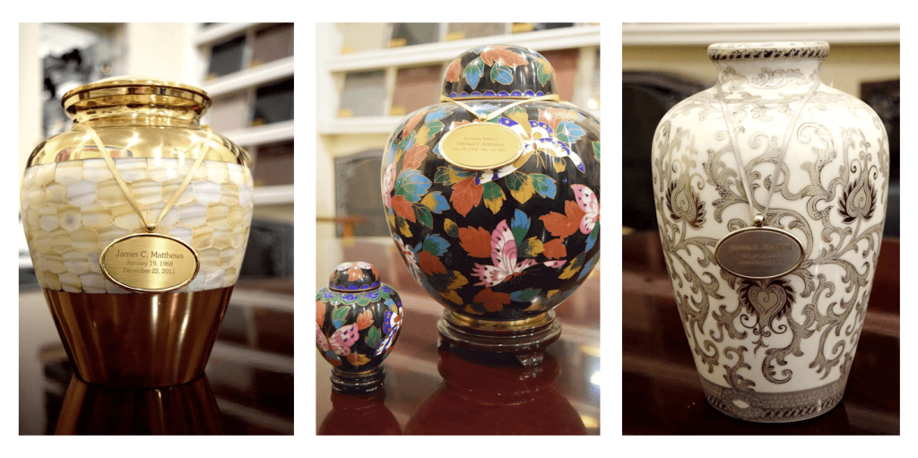 We also offer a wide selection of full-size decorative urns, keepsake urns, and cremation jewelry.